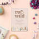 This birthday invitation features a sweet watercolor lion face with the phrase "two wild," accented by neutral toned jungle leaves along the bottom. Perfect for a safari-themed second birthday celebration!