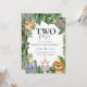 The two wild is the cutest theme for a second birthday. Birthday invitation features a safari, jungle animals such as elephant, lion, giraffe, zebra and a sloth with beautiful tropical greenery. On the back, you can include a picture of your precious child. Check out the rest of the collection for matching birthday supplies.