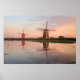 Poster print of two windmills along a river with reflection in the still water in the sunset light on a summer evening in the Netherlands.