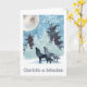 Two Wolves Howling At A Winter Moon Christmas Card - featured on a woodland snow scene background - greetings card from Ricaso - easy add your own text