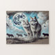 Two Wolves in Moonlight with Pack Jigsaw Puzzle