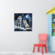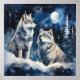 Two wolves in winter with snow, stars and moon