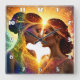 Two Women Embrace With Colourful Energy Aura Square Wall Clock