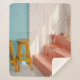 Two yellow wooden bar stools sherpa blanket