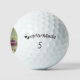 A 3 Pack of Taylor Made TP5 Golf Balls, With a Picture of a Tye Dye Design, = (Tye Dye#6), = (Art By P.J.M.), Colours= Dark Purple, Maroon, Pink, Yellow, White