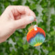 This keychain has an image of a tye dyed fabric. Very colourful! red, blue, green, yellow.