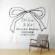 A simple black and white She's Tying The Knot Cute Bow Bridal Shower photo backdrop tapestry. Templates that make it easy for you to change the text: fonts and colours—with a cute hand-drawn bow doodle and script typography.