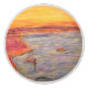 shows fly fisherman tying a fly with sun setting on a western river from original mixed media painting !