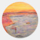 shows fly fisherman tying a fly on and setting sun colouring a western trout stream from original painting !