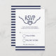RSVP card with a charming calligraphy font in navy blue on a white background.