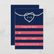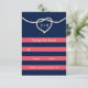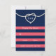 A white sailing rope tied in a heart decorates this RSVP on a coral and navy blue striped background, making it perfect for the nautical or beach wedding. Scroll down to see the rest of the wedding collection, and if additional items are needed, just contact us at prettyfancyinvites@gmail.com with your request.