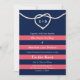 A white sailing rope tied in a heart decorates this wedding invitation on a coral and navy blue striped background, making it perfect for the nautical or seaside wedding. Scroll down to see the rest of the wedding collection, and if additional items are needed, just contact us at prettyfancyinvites@gmail.com with your request.