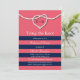 A sailing rope tied in a heart decorates this coral rehearsal dinner invitation, making it perfect for the nautical or beach themed wedding. Scroll down to see the rest of the wedding collection, and if additional items are needed, just contact us at prettyfancyinvites@gmail.com with your request