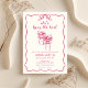 Celebrate the bride-to-be with this charming “She’s Tying the Knot” bridal shower invitation, a hand-illustrated design in soft pink tones that’s as elegant and feminine as the event itself. Perfectly styled with a beautiful pink bow at the top, this invitation captures a coquette aesthetic, blending cuteness with sophistication to set the scene for a bridal shower filled with joy, love, and celebration. The gentle colour palette and thoughtfully drawn details give it a warm, inviting look that’s ideal for honouring the bride in a way that feels both stylish and heartfelt.