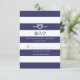 This striped response card features a white loosely tied knot in the shape of a heart. Background colour and text fields can be customised to your liking.