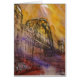 An original painting of The Tyne Bridge from Dean Street in bold bright colours of orange and yellow sky