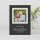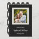 Stylish Photo Save the Date Card featuring your photo surrounded by a border, below which are the words "Save the Date" in a typewriter like font and the couple's names in script in an off-white colour all against a dark grey background. Card backside features overlapping dark grey lines against an off-white background.