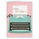 Typewriter with note happy birthday in blue and pink