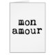 "Mon amour" in vintage style typed font. You can add a background colour.