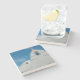 The coasters are gorgeous, a quality feel and heavy weight. They look like a precious archeological find. A rustic stone juxtaposed with a modern floral black and white print. I like the way the print goes slightly imperfect on the cut stone edges giving them a kind-of natural beauty.