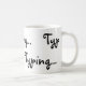 Typing black text letters coffee mug