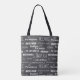 Typographic Black and White Pizza Names Tote Bag