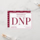 A DNP graduation party invitation in burgundy and white. This invitation also has a pattern of the word DNP on the back.