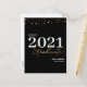 Personalise this modern Class of 2021 graduation announcement postcard with your graduate's name, and school name. Include a special greeting on the back, your return address, and sign of with the Proud Parents' Names. Modern font typography, serif with script faux gold print for the word "graduate". Share your excitement to family and friends on your grad's accomplishment. Fully Customisable text. Gold confetti on black.