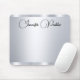 Typography Custom Script Silver Metallic Look Mouse Pad