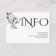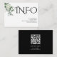 This sophisticated eucalyptus branch with delicate white flowers is the focal point of this black and white floral wedding details card, along with the word 'INFO' in stylish black typography. This modern design not only exudes elegance but also includes a QR code on the back, allowing guests to conveniently scan and access all the necessary wedding information.