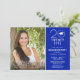 Invite guests to a graduation party with this modern, stylish CLASS OF 2024 (editable for other years) typography design on an editable black background (change to a school colour or a complementary colour for your photo). The front has one photo and the party invitation information and the back side has an editable royal blue background and the year in a light grey colour that can also be changed or deleted. PHOTO TIP: For fastest/best results, choose a photo with the subject in the middle and/or pre-crop it to a similar shape as shown BEFORE uploading. Contact the designer via Zazzle Chat or makeitaboutyoustore@gmail.com if you'd like this design modified, on another product or would like coordinating items.