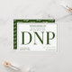A DNP graduation party invitation in green and white. This invitation also has a pattern of the word DNP on the back.
