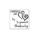 The simple design features san serif and calligraphy font with two solid curly hearts for your "handmade with love" product identification. Click the link to add your details or click customise to select a font style, size, and colour you like that works.