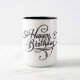 A Beautiful Monochrome Script Happy Birthday Mug In Black and White.