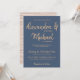 Elegant trendy typography wedding invitation in dark midnight blue with light beige tan lettering featuring big bride's and groom's first names calligraphy script. On the back side, there is a stone like striped beige, dusty rose and grey whimsical pattern. ---- Please note that the navy background colour on front side is editable. You can change it after selecting CUSTOMIZE further option. ------- The invitation is suitable for any season - spring, summer, autumn, winter - indoor wedding reception.