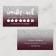 A modern, stylish loyalty card for hair and makeup artist business card with modern hand lettering style brush typography in white on a trendy faux silver glitter red burgundy trendy and elegant background. If you need any customisation, don't hesitate in contacting me
