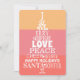 Modern personalised holiday cards in a simple typography Christmas tree design in white on coral, pink and sherbet orange that you can customise with your text. A mix of fonts in white and holiday words form this chic minimalist typography tree against a background of rich coral, deep pink and a soft orange colour. Add the year and your name at the bottom as the base of the tree along with a personalised message on the back of these flat Christmas cards. The words of the season that create the modern Christmas tree include JOY, MERRY AND BRIGHT, LOVE, PEACE ON EARTH, CHEER, HAPPY HOLIDAYS, SANTA and JOYFUL designed in white word art against the coral, pink and orange colour block background. Personalise your own typography holiday cards with this cute Christmas word art design.