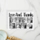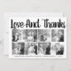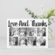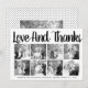Bold typography Wedding Thank You eight photo collage card with the text "Love and Thanks". The backside includes a black and white pattern with dots on lines and your photo.