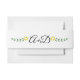 Typography, yellow flowers and initials wedding invitations belly band. It showcases your initials in a cursive script handwritten style typography and small yellow flowers with green leaves.
