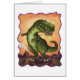 Animal Parade T-Rex Dinosaur Note Card brought to you by ITD Animal Parade features our original art of a cute Tyrannosaurus Rex from the front and the back standing in a prehistoric landscape complete with a smoking volcano, a textured yellow orange sky, and playful waving purple border. Painted by our talented children's illustrator, Traci Van Wagoner, this cute T-Rex dino is great for kids of all ages, and is sure to bring a smile to the faces of all dinosaur lovers on your gift list.