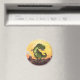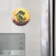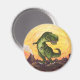 Animal Parade T-Rex Dinosaur Round Magnet brought to you by ITD Animal Parade features our original art of a cute Tyrannosaurus Rex from the front and the back standing in a prehistoric landscape complete with a smoking volcano, a textured yellow orange sky, and playful waving purple border. Painted by our talented children's illustrator, Traci Van Wagoner, this cute T-Rex dino is great for kids of all ages, and is sure to bring a smile to the faces of all dinosaur lovers on your gift list.