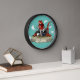 Wall Clock, 25.4 cm Round Black Wooden Frame