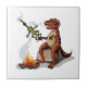Tyrannosaurus Rex Cooking Food Over A Campfire. Ceramic Tile