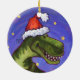 TRex Dinosaur Christmas ornament features our fun artwork digitally painted by Traci Van Wagoner of a Tyrannosaurus Rex decked out in a santa hat. Our fun and humourous dino art all decked out for the holidays makes a unique gift for those Christmas lovers and dinosaur lovers on your gift list this holiday season and is sure to bring a smile to their faces.