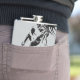 The flask itself is fine. It’s a cheap flask, obviously bought in bulk, however am prepared to overlook that. Given that it is a personalized item, I would have liked to have seen gift boxing instead of the generic packaging. Terrible printing, and/or quality. It’s a cheap, tacky vinyl. It is not cut straight and is also applied in a way that it is overhanging the bottom, causing the glue to catch on items and it will eventually roll and tear, damaging the wrap.