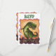 Animal Parade Tyrannosaurus Rex Dino themed Birthday Party RSVP features our original art of a playful TRex dinosaur standing in a brown prehistoric landscape complete with a smoking volcano, and a textured yellow, orange sky and playful wavy purple border. This cute dinosaur from the front and back on many products was painted by our talented children's illustrator, Traci Van Wagoner. Throw a prehistoric dinosaur party for your kid today with our coordinating TRex Dinosaur fun and whimsical gift and party ideas. Have a rip-roaring party! Rawr!
