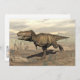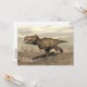 Tyrannosaurus dinosaur running in the desert by cloudy day