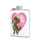 The flask itself is fine. It’s a cheap flask, obviously bought in bulk, however am prepared to overlook that. Given that it is a personalized item, I would have liked to have seen gift boxing instead of the generic packaging. Terrible printing, and/or quality. It’s a cheap, tacky vinyl. It is not cut straight and is also applied in a way that it is overhanging the bottom, causing the glue to catch on items and it will eventually roll and tear, damaging the wrap.
