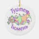 Customisable colourful map ornament of the Russian Federation with Tyumen city location marked with a flag. City name also in Russian - Тюмень. Unique Russia family or adoption or Christmas gift for families with children from Tyumen. Designed by Hendrika of www.RedThreadMaps.com