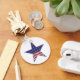 Key chain with a star shape with red white and blue flag inspired design. Very patriotic design that's great for veterans and anyone who wants to show there patriotism.